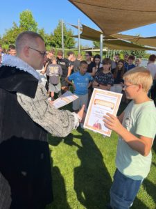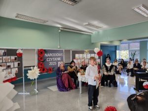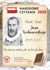 Biblioteka szkolna we współpracy z Biblioteka Publiczna Miasta i Gminy we Wrześni dnia 9 września 2025 roku zorganizowała w szkole NARODOWE CZYTANIE. Uczniowie odbyli podróż do czasów Jana Kochanowskiego, poety z Czarnolasu. Jego fraszki i pieśni, choć powstały dawno temu, wciąż są nam bliskie. Poeta pokazuje, że mimo upływu wieków ludzkie radości i troski pozostają takie same.