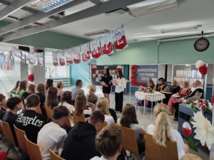 Wydarzenie miało charakter dwuetapowy. W części pierwszej, uroczystej uczniowie z klasy 8c recytowali wybrane utwory mistrza polskiej poezji.