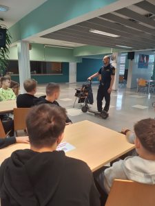W ramach działań profilaktycznych funkcjonariusze Straży Miejskiej we Wrześni przeprowadzili z uczniami klas ósmych zajęcia dotyczące bezpieczeństwa uczestników ruchu drogowego, jeżdżących na elektrycznych hulajnogach. Nasza młodzież poszerzyła swoją wiedzę z zakresu przepisów ruchu drogowego i bezpieczeństwa.