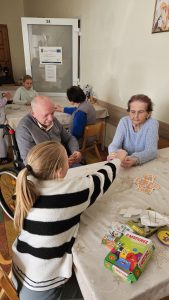 Z okazji Europejskiego Dnia Seniora grupa uczennic z klas Va, Vb i Vs w imieniu społeczności szkolnej, udała się z życzeniami i drobnymi upominkami do Seniorów przebywających w DPS we Wrześni.Był to przede wszystkim czas wzajemnej integracji i radości podczas zabaw i gier planszowych. Planujemy już kolejne spotkanie, tym bardziej, że mamy zaproszenie oraz wielką ochotę, by w ten sposób spędzać wolny czas.