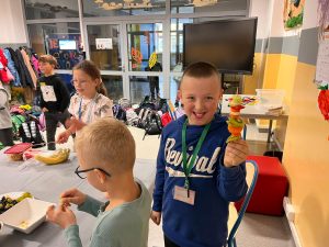 W piątek 17 października w świetlicy na parterze zrobiło się wyjątkowo kolorowo i smacznie. Z okazji Światowego Dnia Owoców i Warzyw uczniowie wzięli udział w specjalnych zajęciach promujących zdrowe odżywianie. Główną atrakcją dnia było wspólne przygotowanie owocowo-warzywnych szaszłyków.