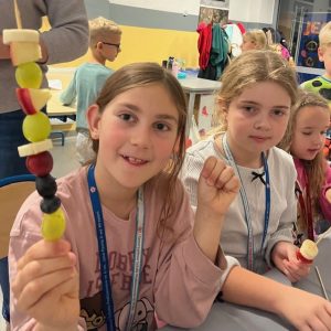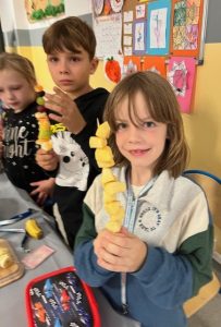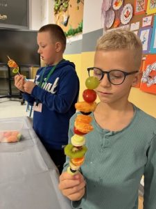 W piątek 17 października w świetlicy na parterze zrobiło się wyjątkowo kolorowo i smacznie. Z okazji Światowego Dnia Owoców i Warzyw uczniowie wzięli udział w specjalnych zajęciach promujących zdrowe odżywianie. Główną atrakcją dnia było wspólne przygotowanie owocowo-warzywnych szaszłyków.