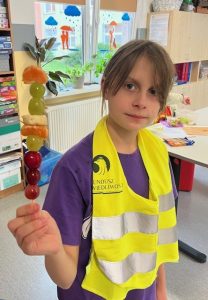 Zajęcia były nie tylko świetną zabawą, ale także okazją do rozmowy o tym, jak ważne jest codzienne spożywanie warzyw i owoców. Dzieci dowiedziały się, że są one źródłem witamin, błonnika i wielu cennych składników odżywczych, które wpływają na nasze zdrowie i samopoczucie.