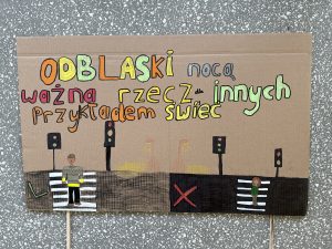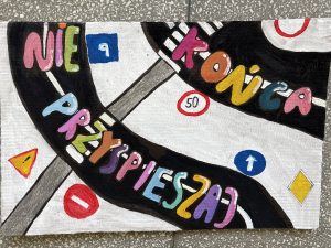 Pierwszy z nich – konkurs plastyczny na transparent o bezpieczeństwie w ruchu drogowym – skierowany był do całych klas. Uczniowie wykazali się ogromną kreatywnością, pomysłowością i zaangażowaniem. Jury miało niełatwe zadanie, a ostatecznie wyłoniono zwycięzców w trzech kategoriach wiekowych: