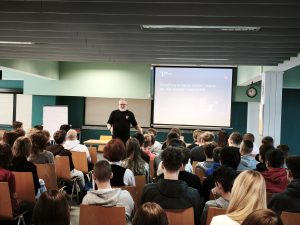 Jak dbać o higienę cyfrową uczył młodzież klas ósmych SSP-6 dr Maciej Dębski – socjolog problemów społecznych, założyciel i prezes fundacji Dbam o Mój Zasięg, wykładowca akademicki Uniwersytetu Gdańskiego.