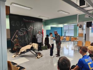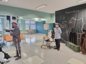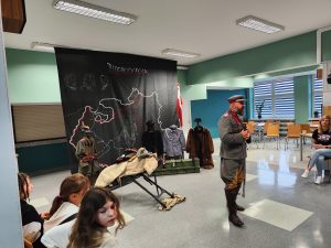 Pan Michał w przystępny i zrozumiały sposób wyjaśnił uczniom, czym jest wolność i niepodległość, ucząc jednocześnie takich wartości jak patriotyzm i szacunek do ojczyzny. Uczniowie mieli okazję zobaczyć i dotknąć replik broni oraz strojów używanych przez naszych przodków, a także uczestniczyć w krótkich scenkach historycznych aranżowanych przez prowadzącego.