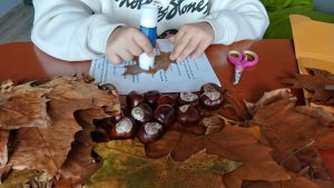Wyzwania projektowe są przeznaczone dla przedszkoli, klas 0–8 szkół podstawowych, szkół z oddziałami integracyjnymi i specjalnymi oraz nauczycieli, terapeutów i nauczycieli pracującymi z uczniami z SPE. Projekt to szansa na rozwój kompetencji społecznych, emocjonalnych i twórczych uczniów ze specjalnymi potrzebami edukacyjnymi (SPE) poprzez cykliczne warsztaty łączące plastykę, ruch, zabawę i integrację sensoryczną. Zadanie 1 pt. „Szelest barw w dziecięcych dłoniach” polegało na stworzeniu pracy plastycznej inspirowanej kolorami spadających liści, kasztanów i jesiennej pogody. Uczniowie, starając się uchwycić piękno jesieni w twórczy, indywidualny sposób stworzyli takie oto dzieła.