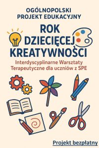 W tym roku szkolnym nauczyciele współorganizujący proces kształcenia podczas zajęć rewalidacyjnych wraz z uczniami będą podejmować się realizacji zadań z Ogólnopolskiego Projektu Edukacyjnego „Rok Dziecięcej Kreatywności – interdyscyplinarne warsztaty terapeutyczne dla uczniów z SPE”.