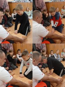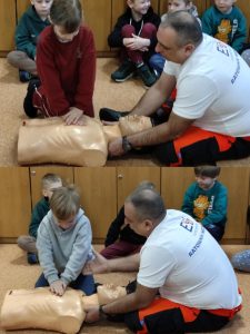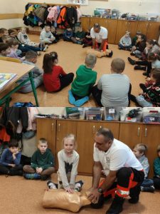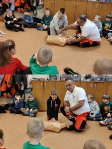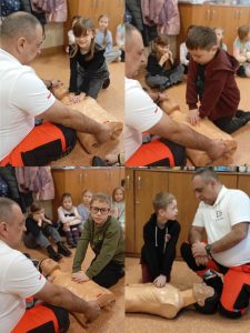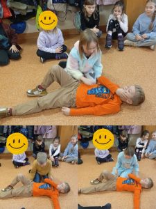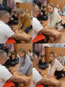 Uczniowie klas 1C i 1D wzięli udział w kolejnym spotkaniu w ramach Innowacji ABC Zdrowia i Pierwszej Pomocy. Tym razem uczestniczyli w warsztatach prowadzonych przez ratownika medycznego, Pana Sebastiana Dudka 👨⚕️. Podczas zajęć uczniowie poznali zasady pierwszej pomocy i ćwiczyli techniki ratujące życie na fantomie 🧑🤝🧑. Omówiono bezpieczeństwo na miejscu zdarzenia, ocenę poszkodowanego oraz najczęstsze przyczyny omdleń i zatrzymania krążenia. W części praktycznej uczniowie uczyli się wykonywania RKO, reagowania na omdlenia oraz układania poszkodowanego w pozycji bocznej bezpiecznej. Spotkanie było bardzo pouczające i zwiększyło pewność w udzielaniu pierwszej pomocy 🚑.