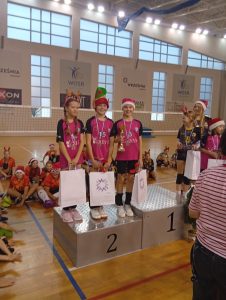 W czwartek  4 grudnia w SSP1 Września rozegrany został Mikołajkowy Turniej Minisiatkówki Trójek. W kategorii dziewcząt w turnieju wzięło udział 20 zespołów z  wrzesińskich szkół podstawowych SSP1 i SSP6 oraz Kostrzyna i Czerniejewa. Nasza szkoła reprezentowana była przez siatkarki klasy sportowej Vs. Najlepiej, bo na II miejscu, turniej zakończył zespół w składzie : Alisa Kaczarżuk, Marcelina Jama i Antonina Michalska. Na III miejscu zakończyły rywalizację: Sofiia Obykhvist i Sevilia Ibrahimova , które zagrały w zespole razem z rówieśniczkami z Kostrzyna. Tuż za podium, bo na IV miejscu, uplasował się zespół w składzie: Veronika Podvorna, Jagoda Mardas i Gabriela Nowaczyk. W turnieju grały również: Maja Hofman, Pola Wojciechowska, Klara Skowrońska, Helena Karolak, Hanna Majka i Julia Jankowiak. Wszystkim naszym siatkarkom gratulujemy udanego mikołajkowego grania.