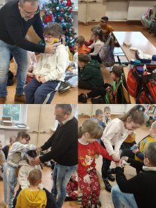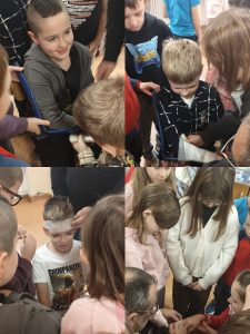 Podczas zajęć dzieci ćwiczyły bandażowanie ran, unieruchamianie kończyn oraz stabilizację głowy i szyi 🩹🦴. Zajęcia miały wysoki walor edukacyjny, były bardzo ciekawe, a uczniowie byli bardzo zainteresowani i chętnie brali w nich udział, zdobywając praktyczne umiejętności z zakresu pierwszej pomocy 👍😊.
