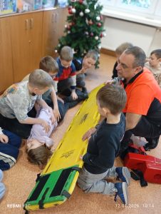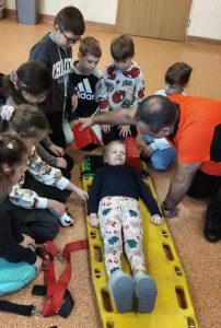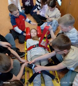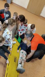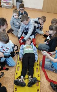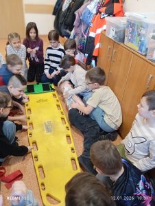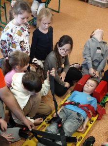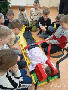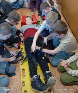Podczas ostatnich zajęć z ratownictwa medycznego w ramach innowacji „ABC Zdrowia i Pierwszej Pomocy” uczniowie klas 1c i 1d skupili się na zasadach zabezpieczania osoby poszkodowanej podczas transportu 🚑. Dzieci uczyły się, jak prawidłowo ułożyć poszkodowanego na desce oraz bezpiecznie zapiąć pasy stabilizujące 🩺. Cały cykl zajęć był bardzo ciekawy i dostarczył uczniom wielu cennych wiadomości oraz praktycznych umiejętności 👏😊, które z pewnością zwiększyły ich świadomość i pewność działania w sytuacjach zagrożenia ❤️.