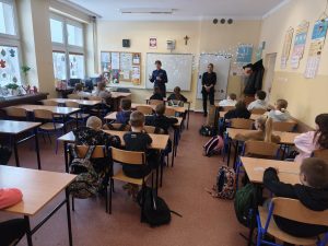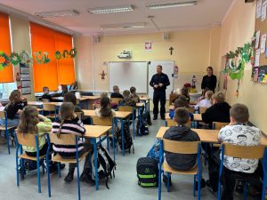 W naszej szkole odbyły się spotkania klas 3 z Panią Policjantką na temat bezpieczeństwa na drodze. Uczniowie dowiedzieli się, jak ważne są odblaski i dobra widoczność, przypomnieli sobie znaki drogowe oraz zasady bezpiecznego poruszania się po przejściach dla pieszych i chodnikach.