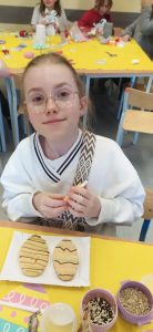 Po części teoretycznej przyszedł moment na coś, co dzieci lubią najbardziej — dekorowanie mazurka. Każdy uczestnik stworzył własną, wyjątkową kompozycję. Powstały prawdziwe cukiernicze arcydzieła, pełne kolorów i fantazji. Najtrudniejszym zadaniem okazało się…nie zjeść dekoracji przed użyciem