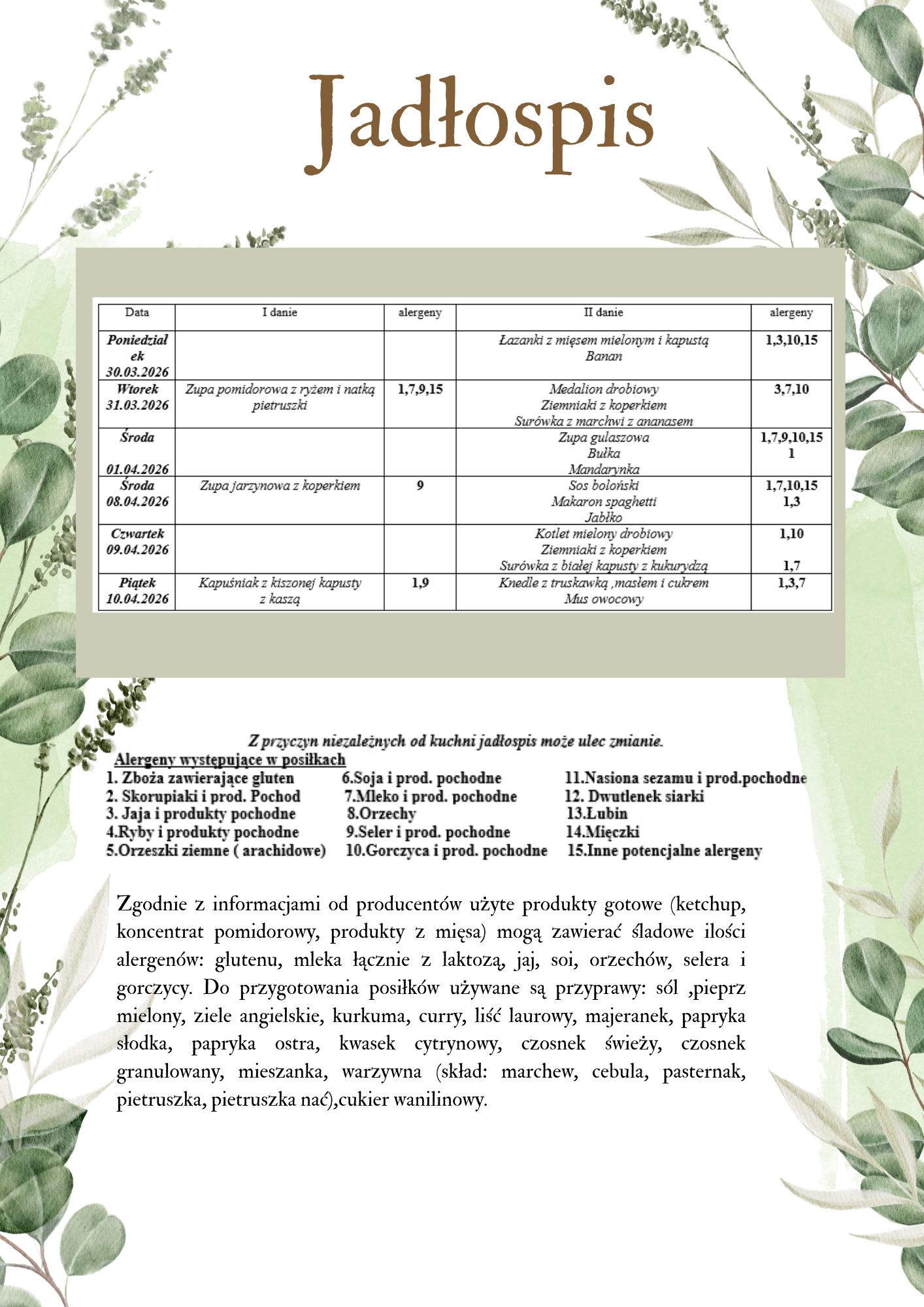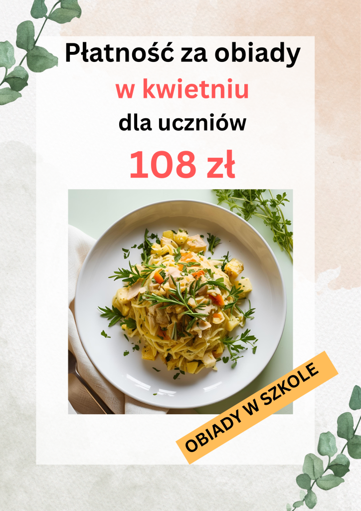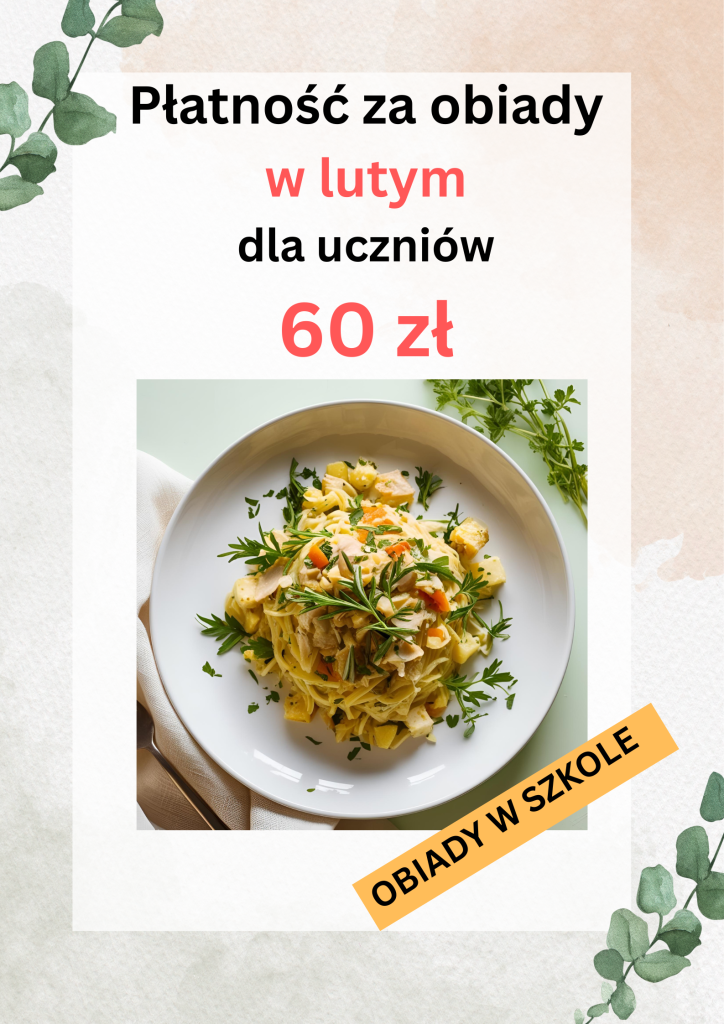 Wszystkie płatności za obiady prosimy o uregulowanie do 15 dnia danego miesiąca.